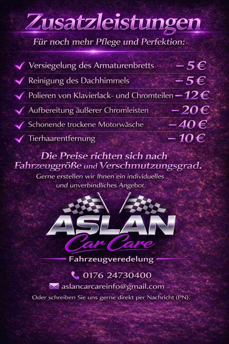 Gönnen Sie Ihrem Fahrzeug das Extra an Pflege – mit unseren professionellen Zusatzleistungen. Wir gehen ins Detail, um Ihr Auto nicht nur sauber, sondern makellos zu machen.